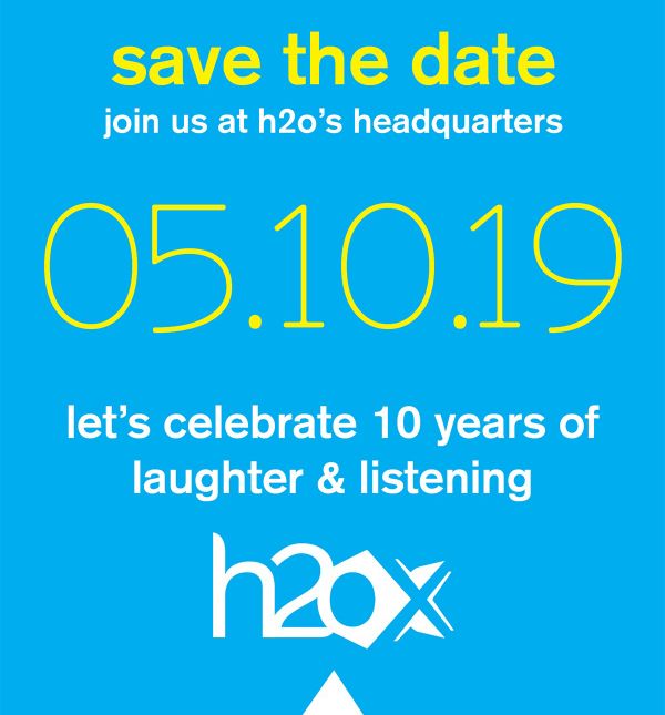 In true h2o fashion, we will celebrate this milestone anniversary with you, our team, families, friends, clients, vendors.
